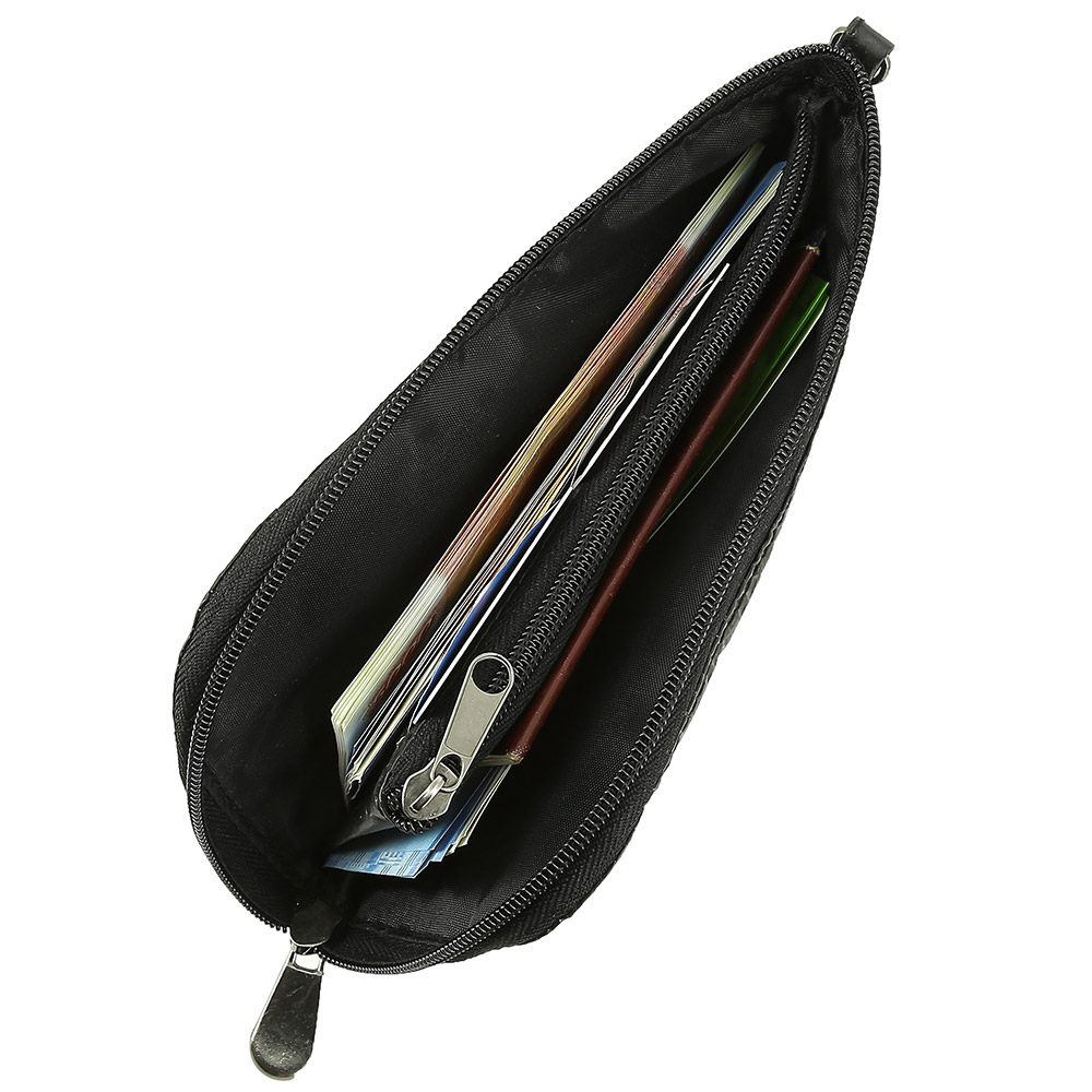 Детали: одно вместительное отделение с застежкой на молнию, подклад из полиэстера, одно внутреннее отделение с застежкой на молнию, два внутренних кармана для карт, с торца изделия вшит хлястик с кольцом для возможности крепления ручки с карабином.
