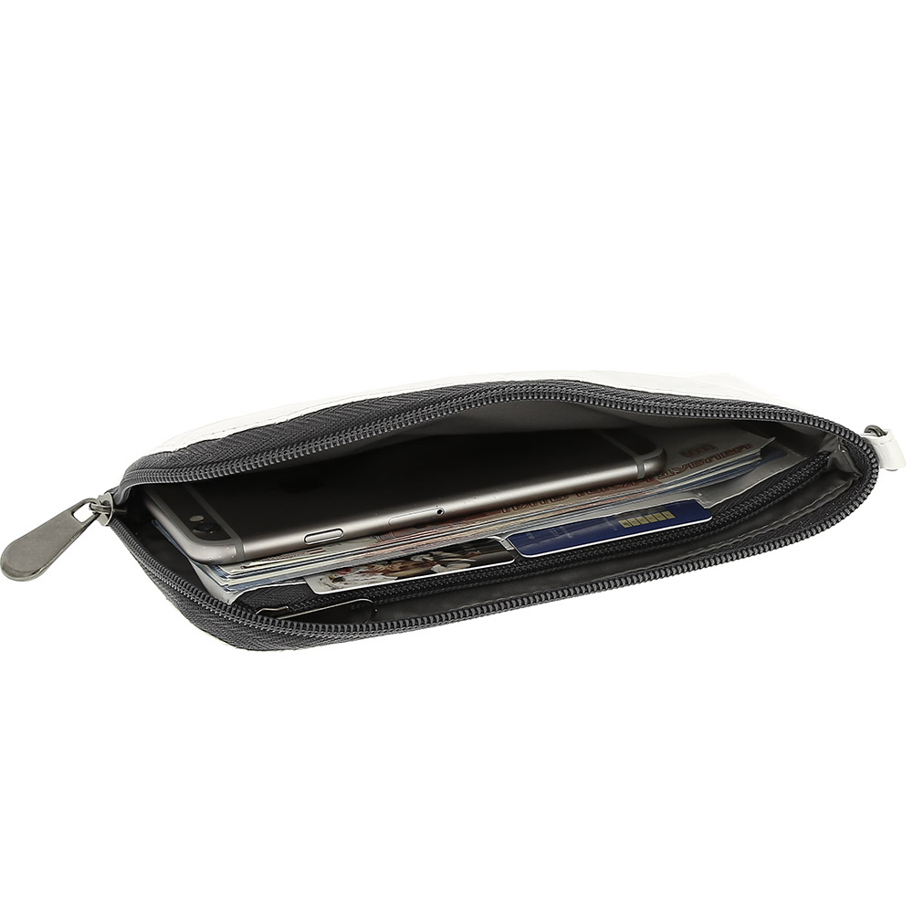 Детали: одно вместительное отделение с застежкой на молнию, подклад из полиэстера, одно внутреннее отделение с застежкой на молнию, два внутренних кармана для карт, с торца изделия вшит хлястик с кольцом для возможности крепления ручки с карабином.