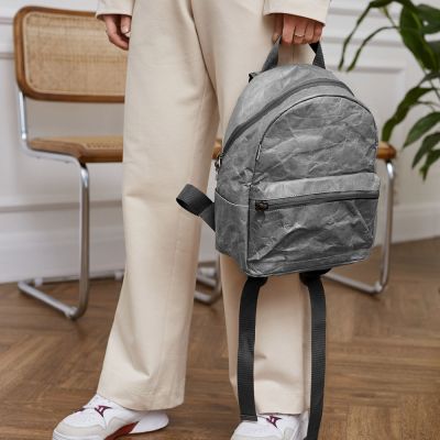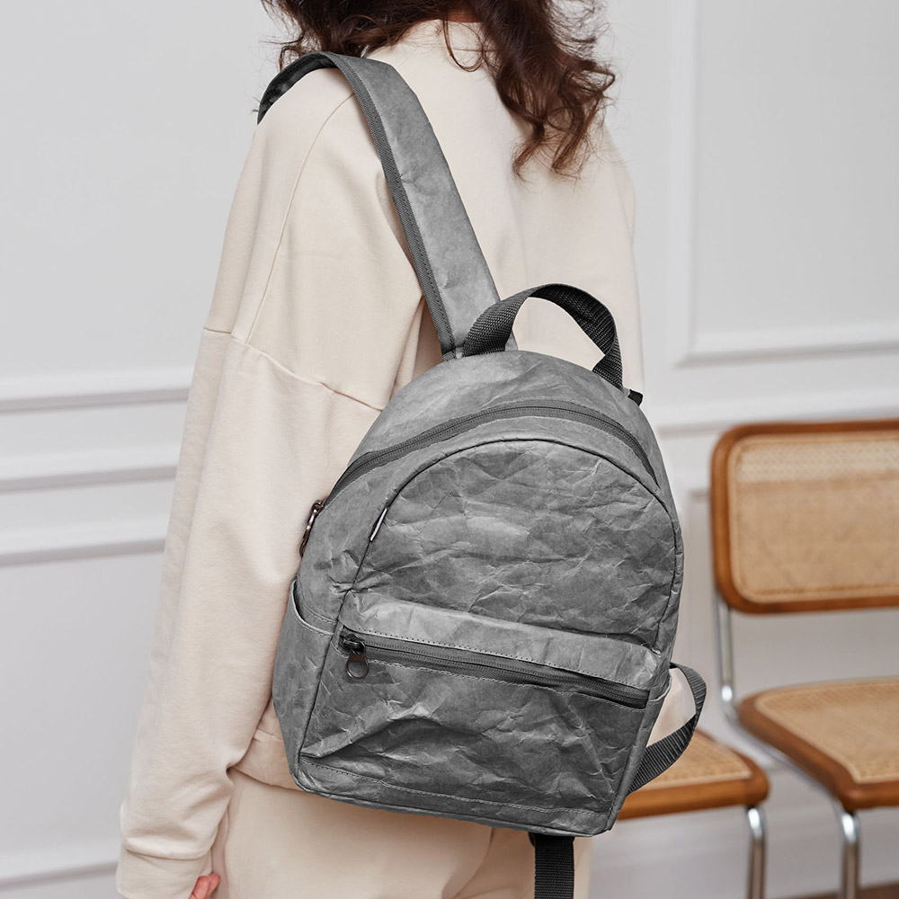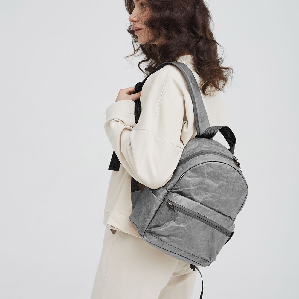 Рюкзак Latifa Kraft Gray выполнен из необычного Крафт материала Tyvek (Тайвек), который устойчив к дождю и снегу, его можно даже мыть в стиральной машине, в холодной воде. Материал ультра легкий и прочный.
