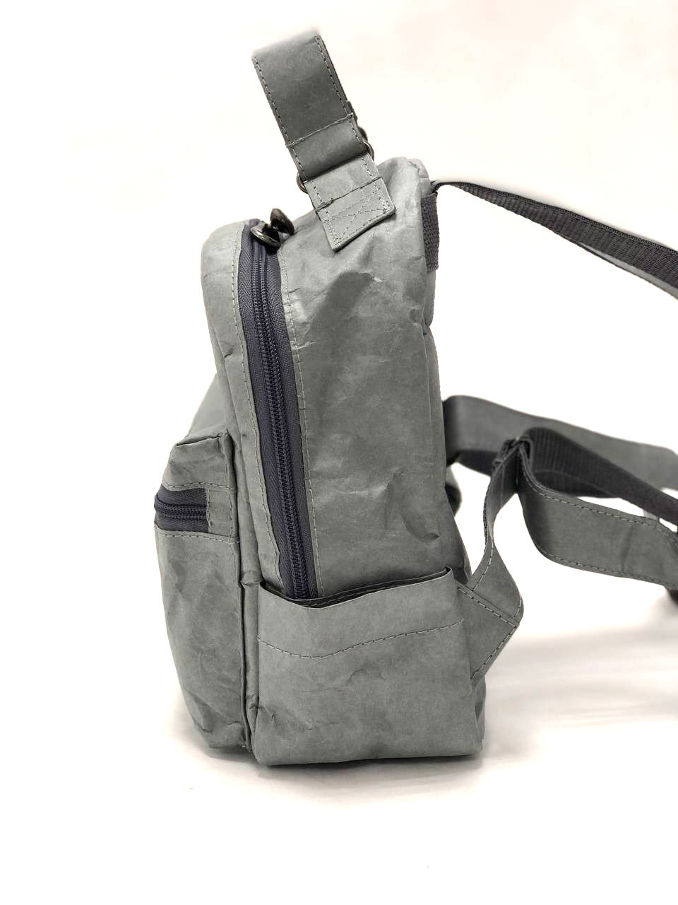 Детали: одно вместительное отделение с застежкой на молнию, один внешний карман с застежкой на молнию, два кармашка по бокам, подклад из хлопкосодержащей смесовой ткани, два маленьких внутренних кармана для мелочей, один внутренний карман с застежкой на молнию, лямки выполнены из основного материала, дублируются хлопковой стропой в тон и регулируются по длине.