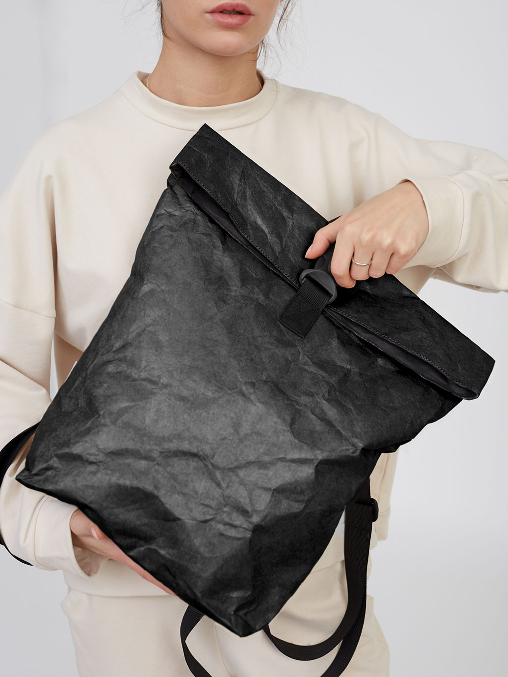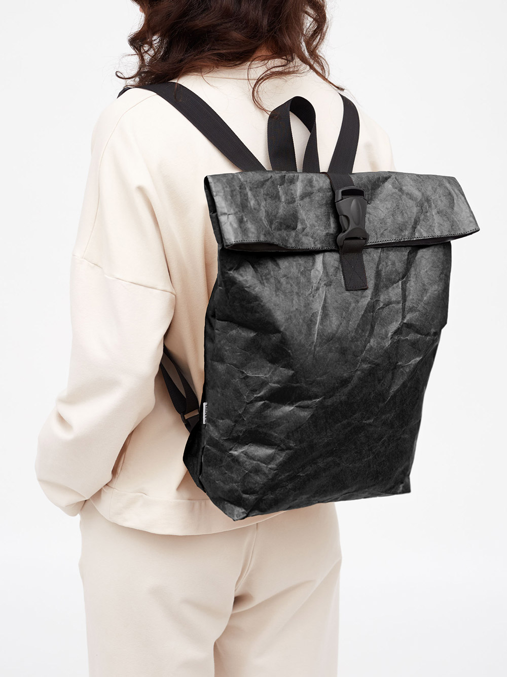 Рюкзак Rolly Kraft Black выполнен из необычного Крафт материала Tyvek (Тайвек), который устойчив к дождю и снегу, его можно даже мыть в стиральной машине, в холодной воде. Материал ультра легкий и прочный.