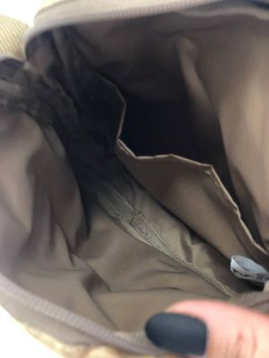 Детали: одно вместительное отделение с застежкой на молнию, один внешний карман с застежкой на молнию, один внешний карман с застежкой на кнопку, подклад из хлопкосодержащей смесовой ткани, регулируемый ремень из стропы.