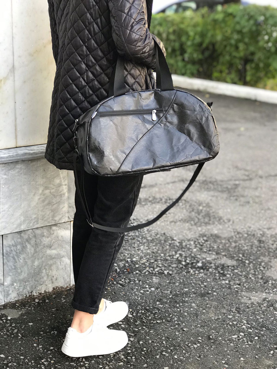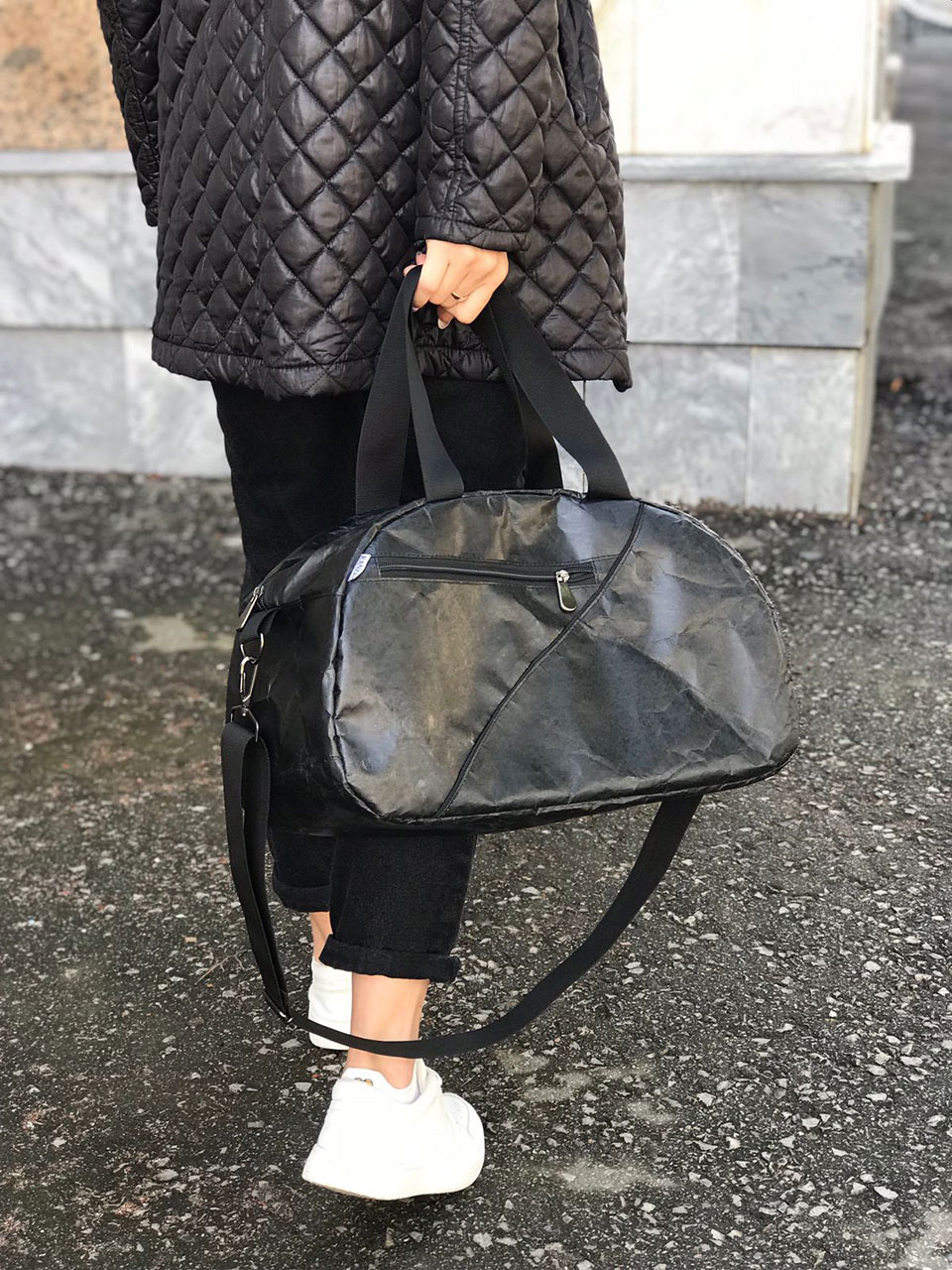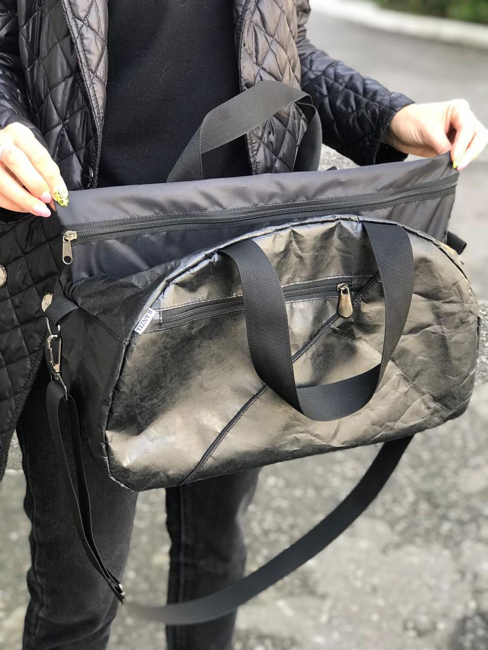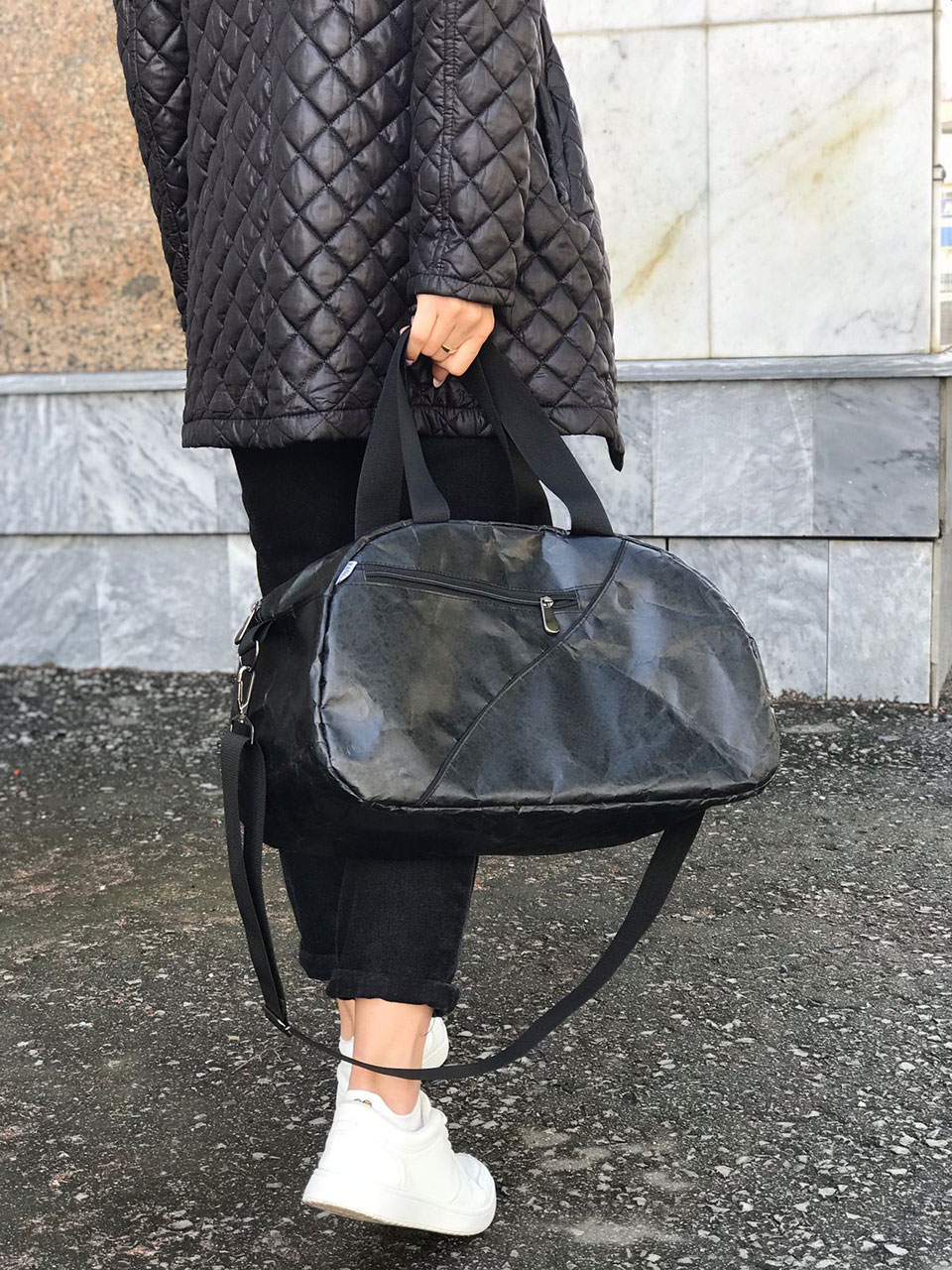 Сумка Hunty Black выполнена из необычного Крафт материала Tyvek (Тайвек), который устойчив к дождю и снегу, его можно даже мыть в стиральной машине, в холодной воде. Материал ультра легкий и прочный.