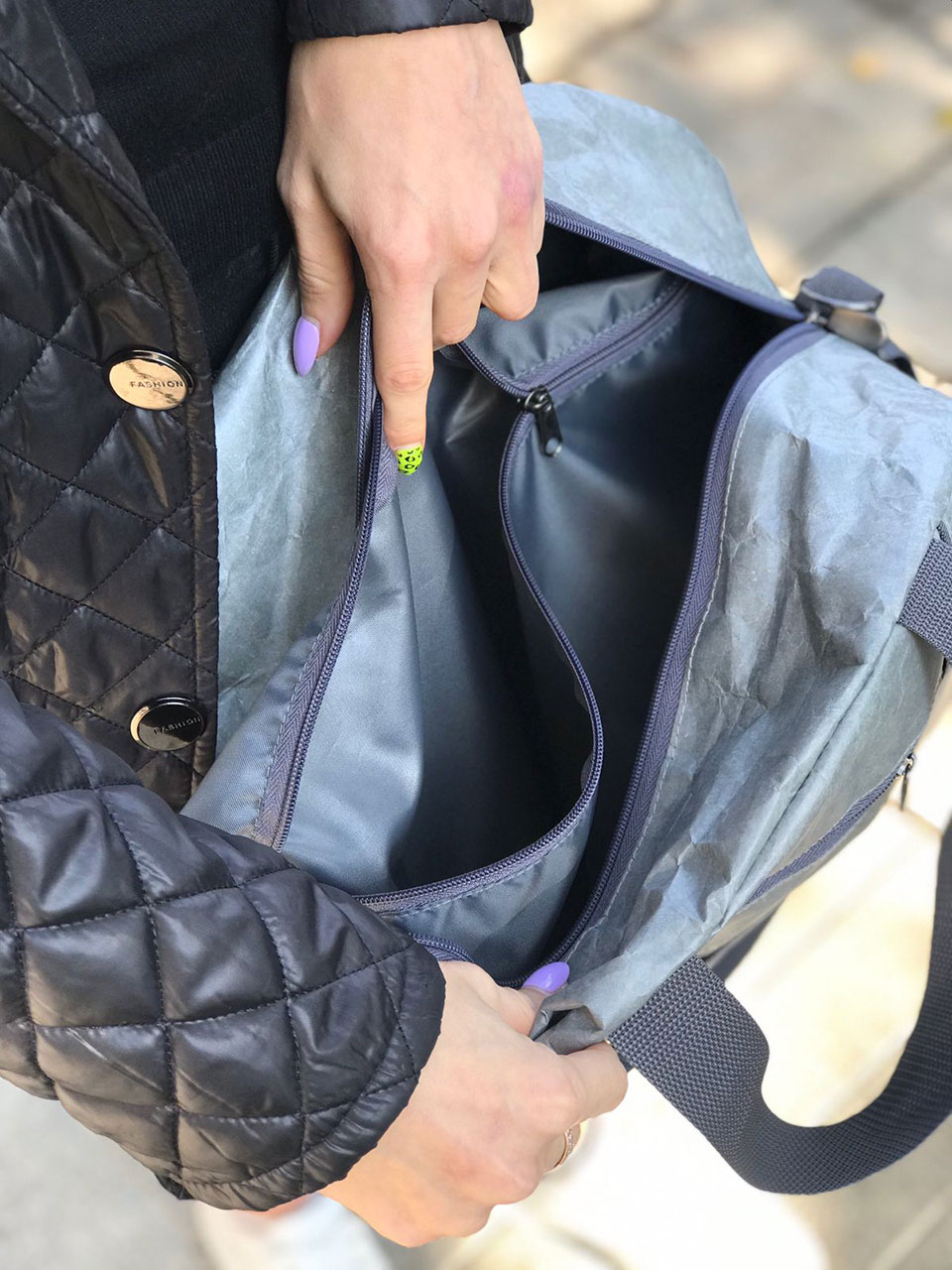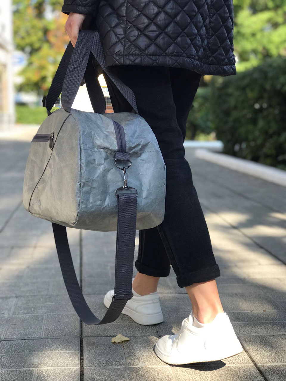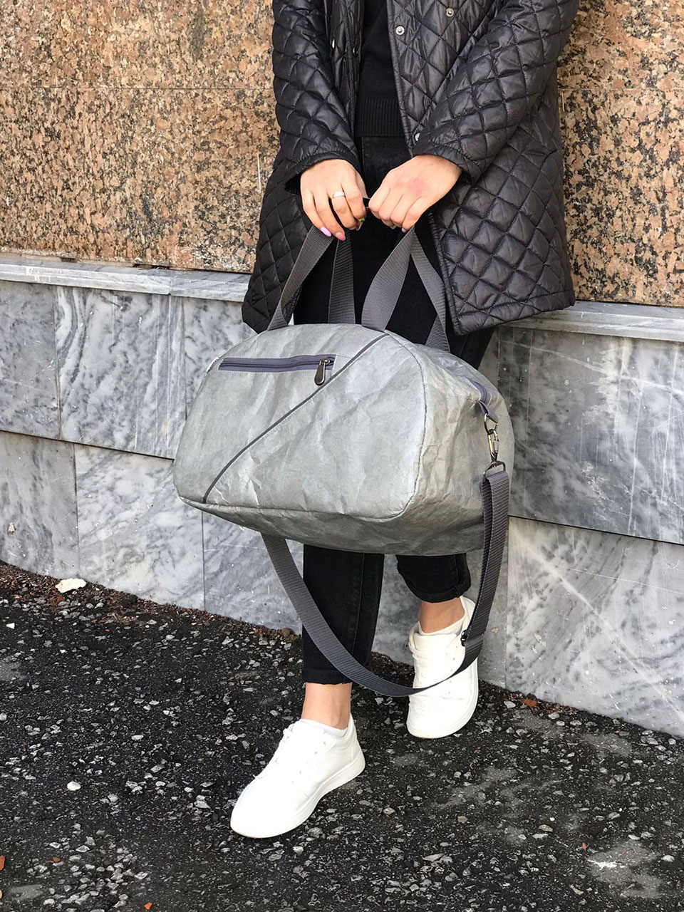 Сумка Hunty Gray выполнена из необычного Крафт материала Tyvek (Тайвек), который устойчив к дождю и снегу, его можно даже мыть в стиральной машине, в холодной воде. Материал ультра легкий и прочный.