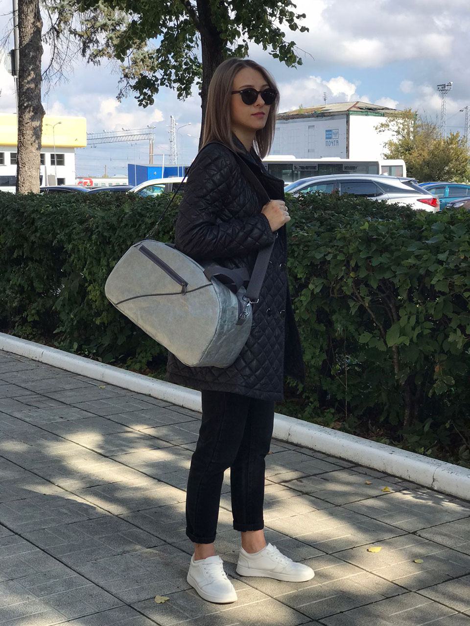 Детали: одно вместительное отделение с застежкой на молнию, один внешний карман с застежкой на молнию, один внутренний карман с застежкой на молнию, ручки выполнены из крепкой синтетической стропы, съемный плечевой регулируемый ремень. Ручки и крепление плечевого ремня усилены и прошиты по периметру сумки. Подклад выполнен из ткани Оксфорд.