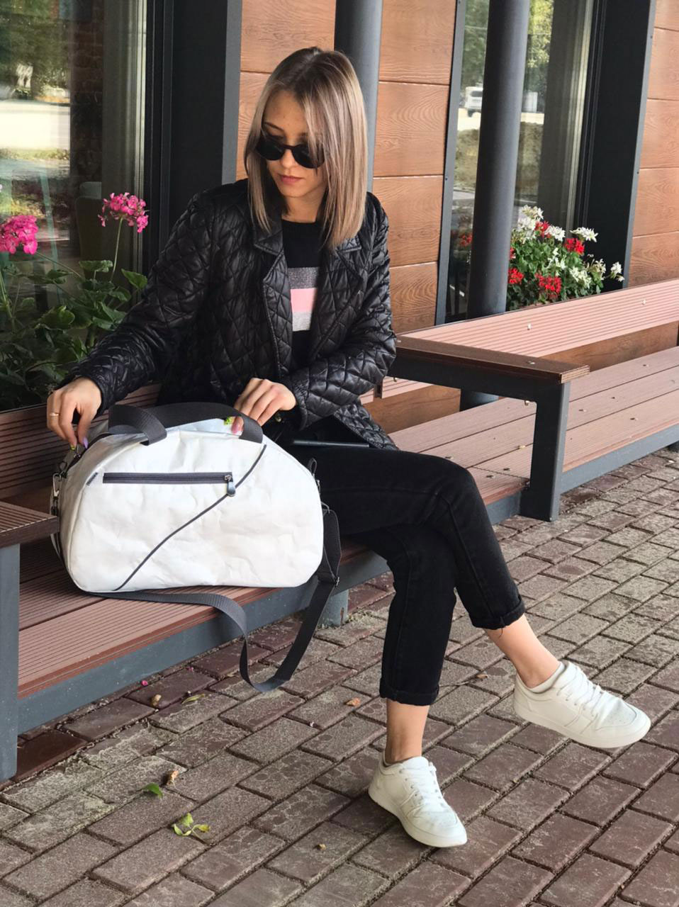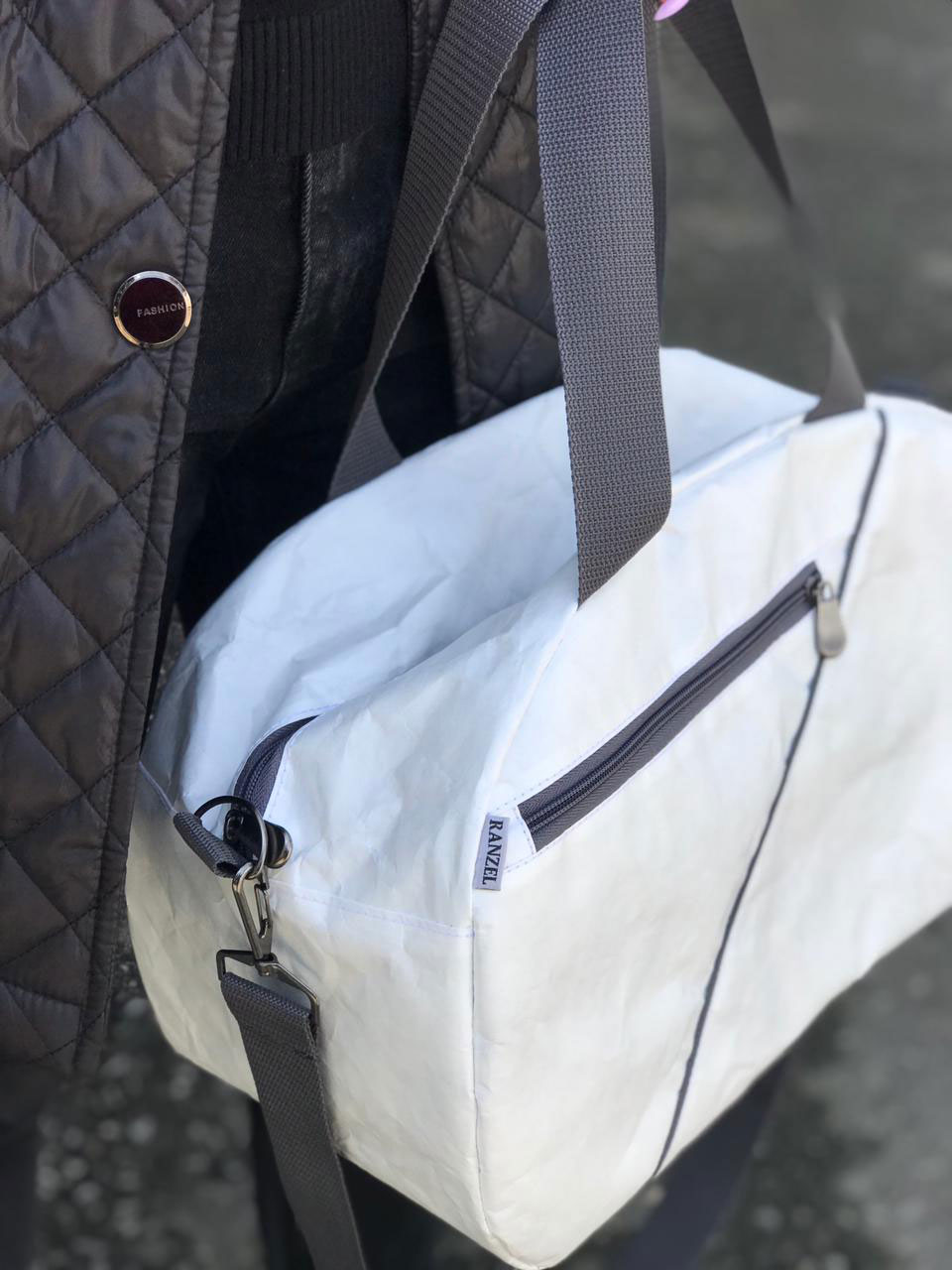 Сумка Hunty White выполнена из необычного Крафт материала Tyvek (Тайвек), который устойчив к дождю и снегу, его можно даже мыть в стиральной машине, в холодной воде. Материал ультра легкий и прочный.