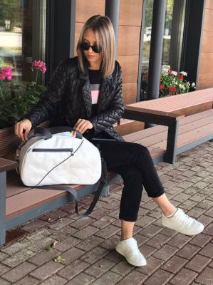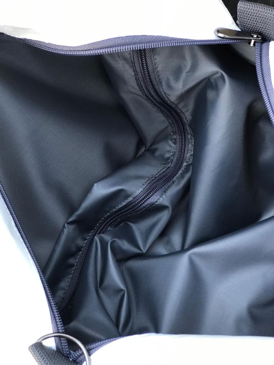 Детали: одно вместительное отделение с застежкой на молнию, один внешний карман с застежкой на молнию, один внутренний карман с застежкой на молнию, ручки выполнены из крепкой синтетической стропы, съемный плечевой регулируемый ремень. Ручки и крепление плечевого ремня усилены и прошиты по периметру сумки. Подклад выполнен из ткани Оксфорд.