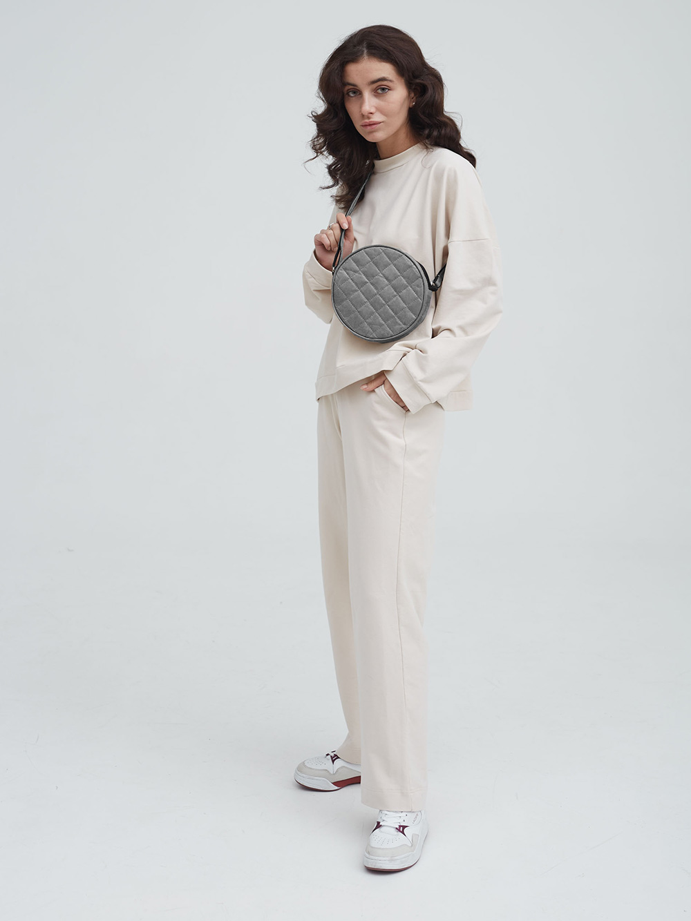 Детали: одно вместительное отделение с застежкой на молнию, подклад выполнен из хлопкосодержащей смесовой ткани, один внутренний карман с застежкой на молнию, два внутренних кармашка для мелочей, регулируемый ремень из стропы, дублированный материалом в цвет сумки.