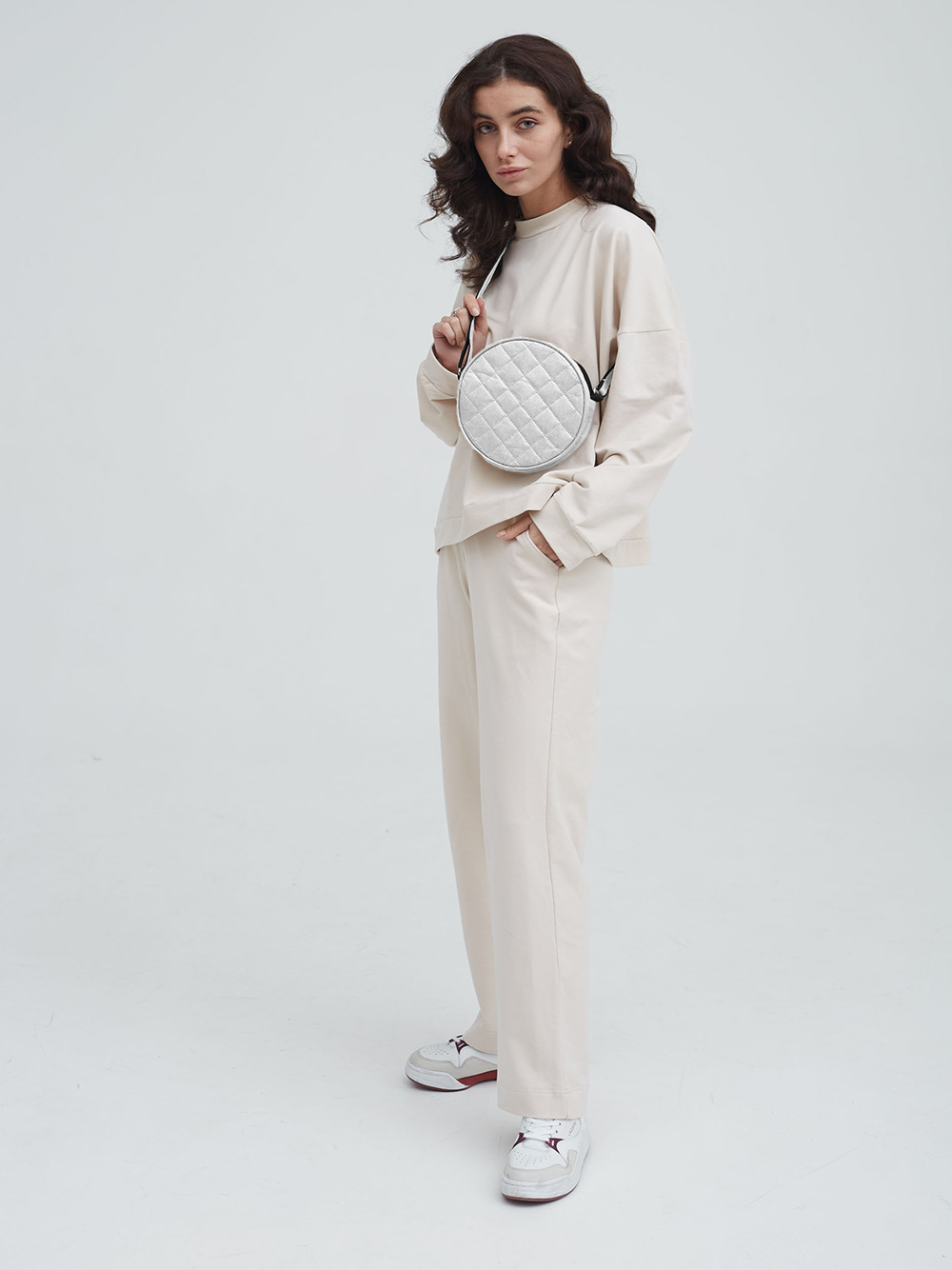 Детали: одно вместительное отделение с застежкой на молнию, подклад выполнен из хлопкосодержащей смесовой ткани, один внутренний карман с застежкой на молнию, два внутренних кармашка для мелочей, регулируемый ремень из стропы, дублированный материалом в цвет сумки.