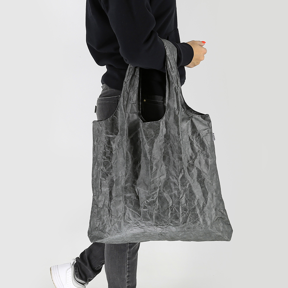 Сумка-шоппер Borsa Kraft Gray выполнена из нетканого Крафт материала Tyvek (Тайвек), который устойчив к дождю и снегу, его можно даже мыть в стиральной машине, в холодной воде. Это полиэтилен высокой плотности HDPE. Материал невероятно легкий и прочный.
